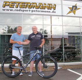Im Rahmen des Sportfests des SV Mundingen fand wieder die traditionelle Tombola statt. Insgesamt gab es über 100 attraktive Preise zu gewinnen. Der diesjährige Hauptpreis war ein Scott Mountainbike. Gesponsert wurde das Fahrrad von Radsport Petermann in Emmendingen. Am vergangenen Freitag fand die Übergabe statt. Auf dem Foto: der glückliche Gewinner Frank Dutter aus Kiechlinsbergen (rechts) und Holger Petermann (links).